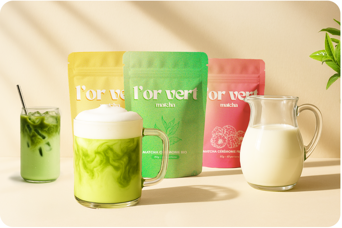 Découvrez nos matchas : nature, ou naturellement aromatisés à la vanille, framboise ou coco !